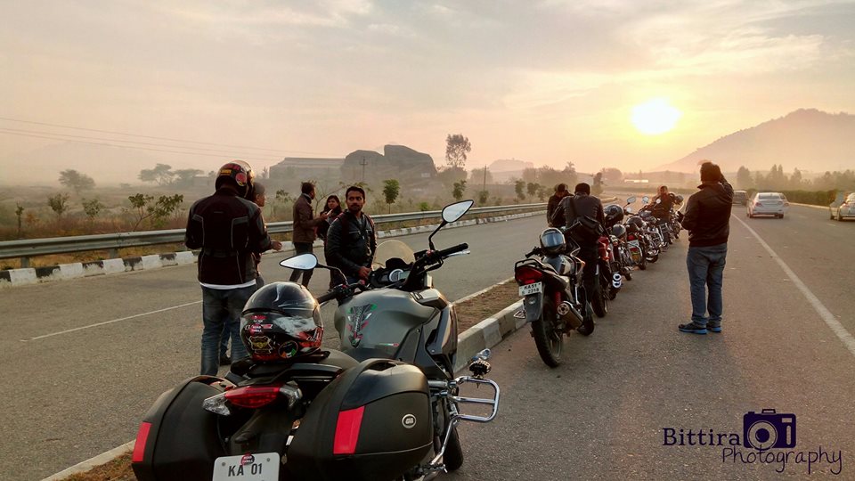 We stopped at Mulbagal Toll Naka to take some pics of all our riders posing with our bikes.